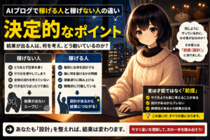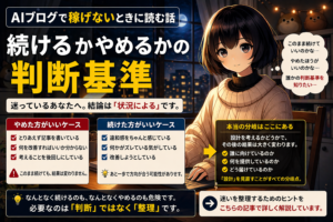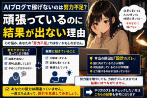 このあたりは、AIブログが稼げない理由を整理した記事や、