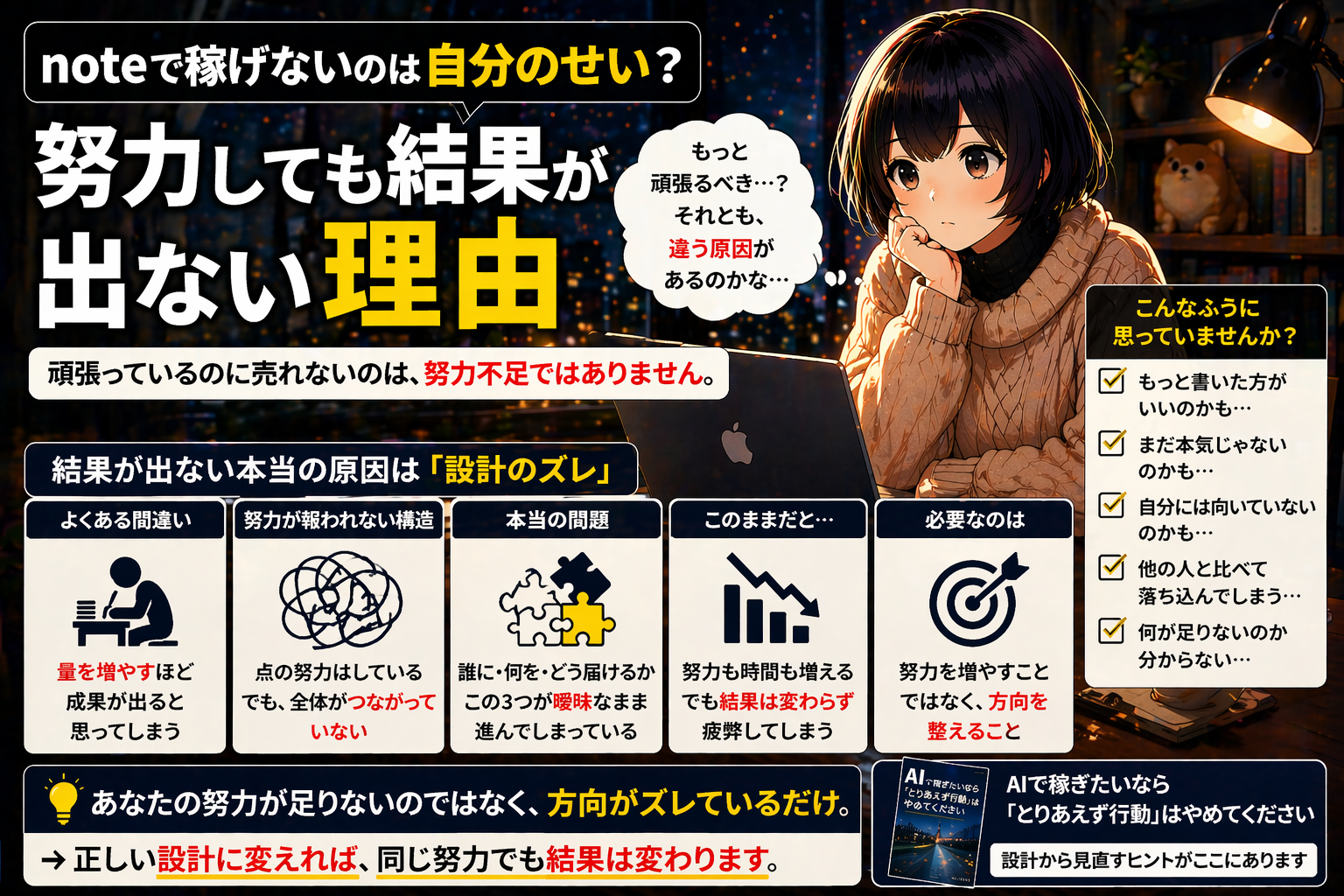 noteで稼げないのは、あなたの努力不足ではない可能性が高いです。